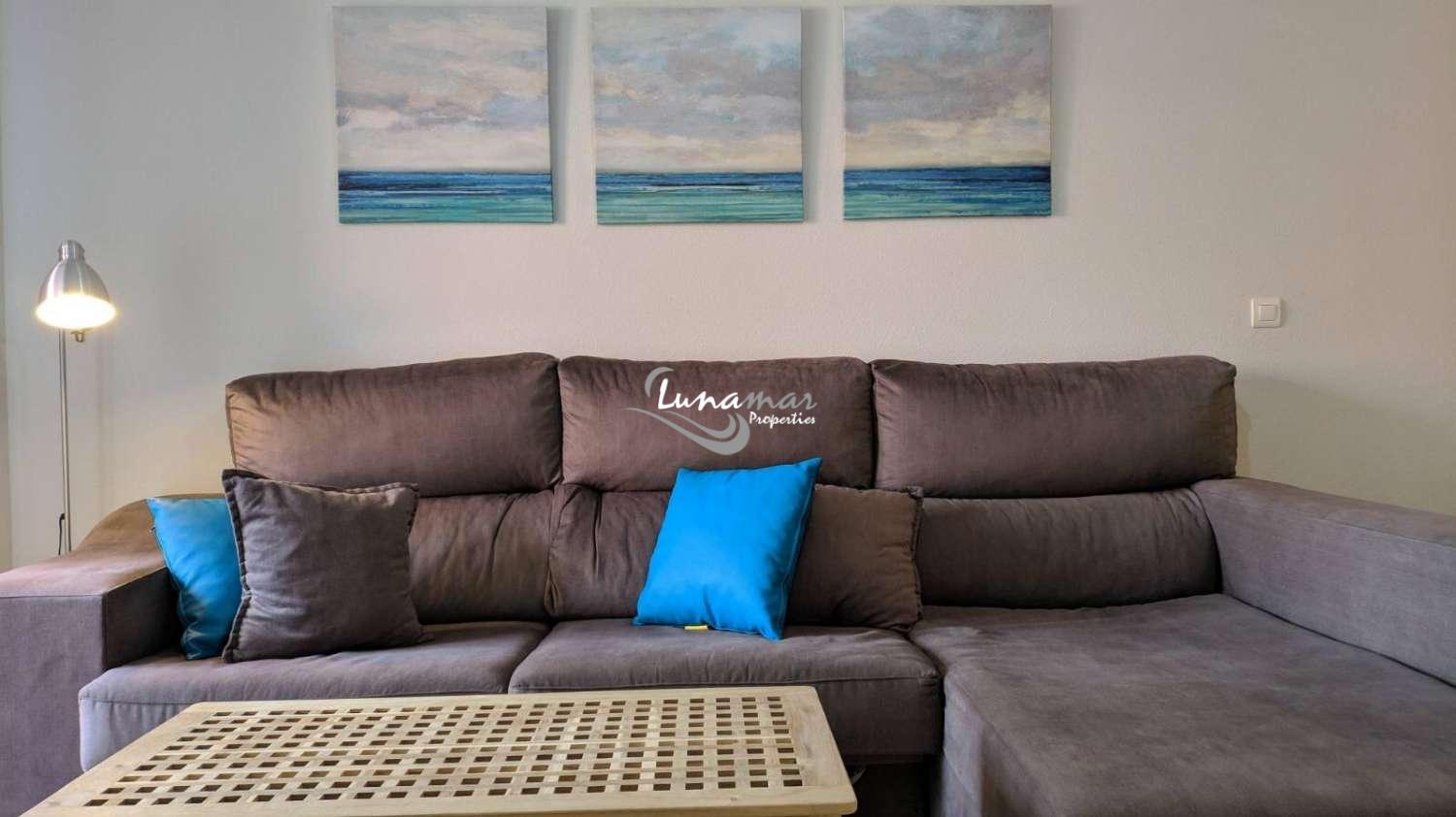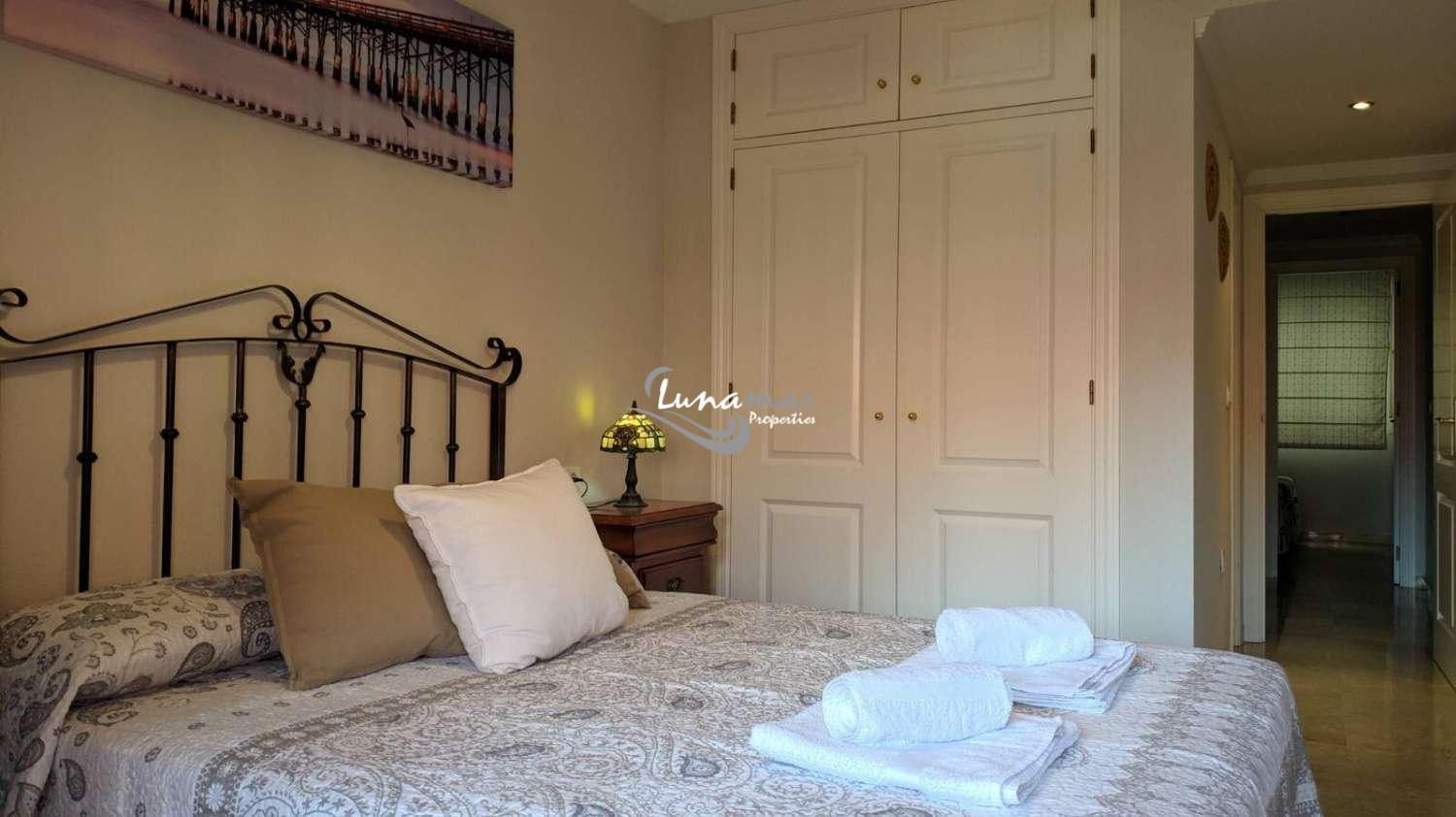 Loué du 04 SEPTEMBRE 2024 au 30 JUIN 2025, appartement en bord de mer Benalmadena Costa. Deux chambres, deux salles de bains, cuisine séparée, salon et terrasse orientée Sud et vue mer, meublé et équipé, A / C et chauffage central, espace de garage fermé. La solvabilité économique est demandée pour garantir le loyer